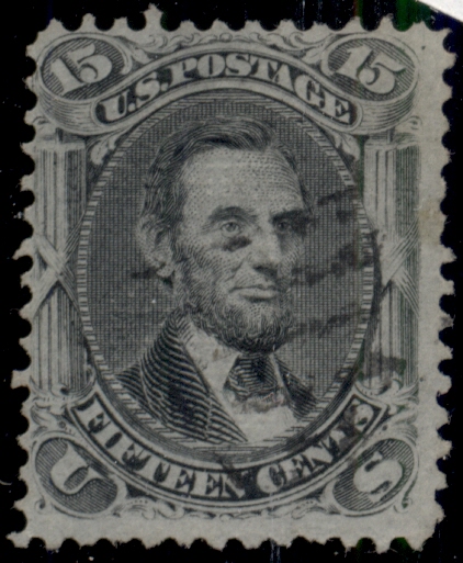 15¢ Lincoln “F” Grill, Very Thin Paper variety, used w/light cancel, F/VF, Scott $475.00, $220.00 |