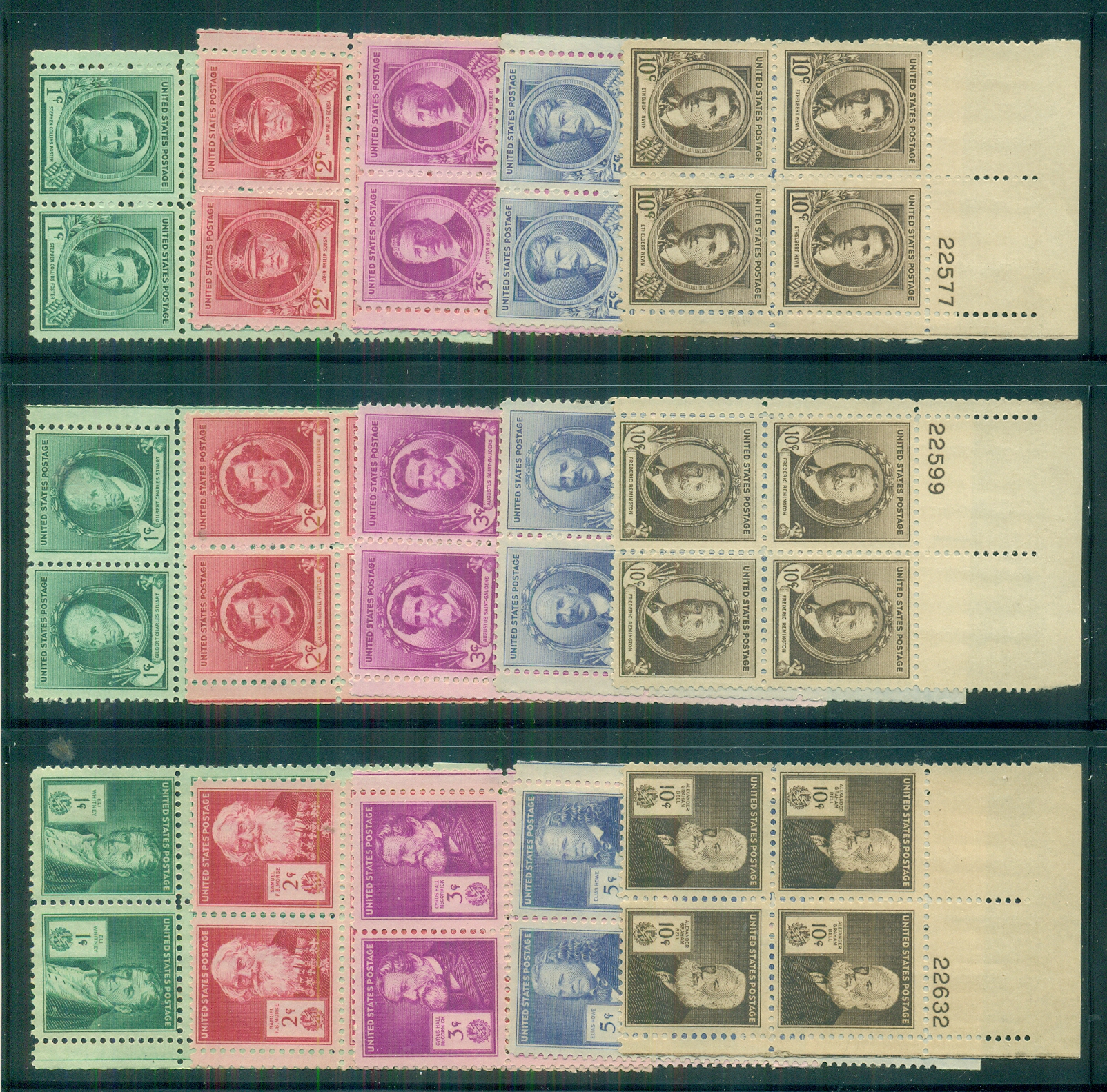 Complete Famous Americans set in Plate No. Blocks of 4, og, NH, VF, Scott $245.70, $105.00 |
