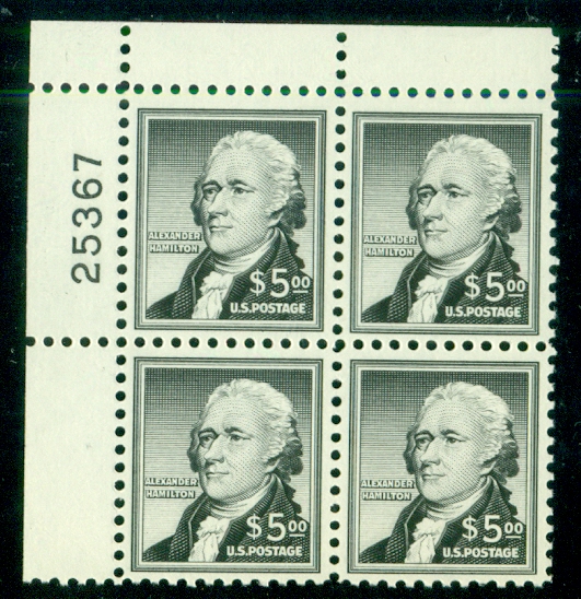 $5.00 Hamilton, og, NH, Plate No. Block of