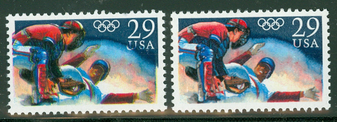 NH, Double Print of U in USA error, VF, normal stamp shown at right,
