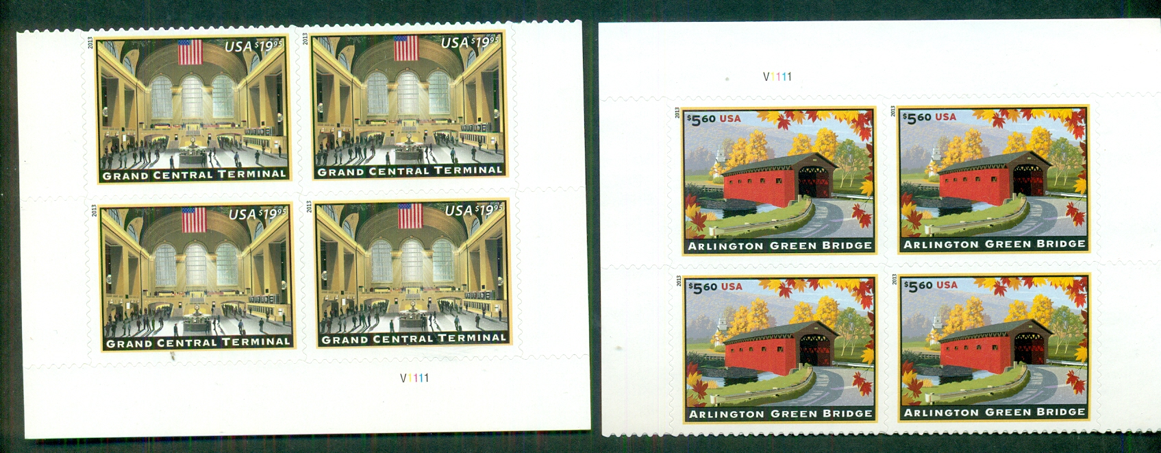$5.60 Arlington Bridge & $19.95 Gand Central, Plate Blocks of 4, NH, Face $102.20, $135.00 |