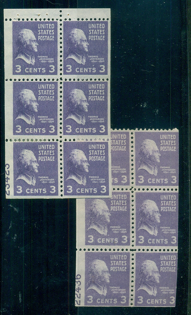 3¢ Prexie Booklet Pane of 6 w/diff Plate numbers, NH LH, $18.00 |