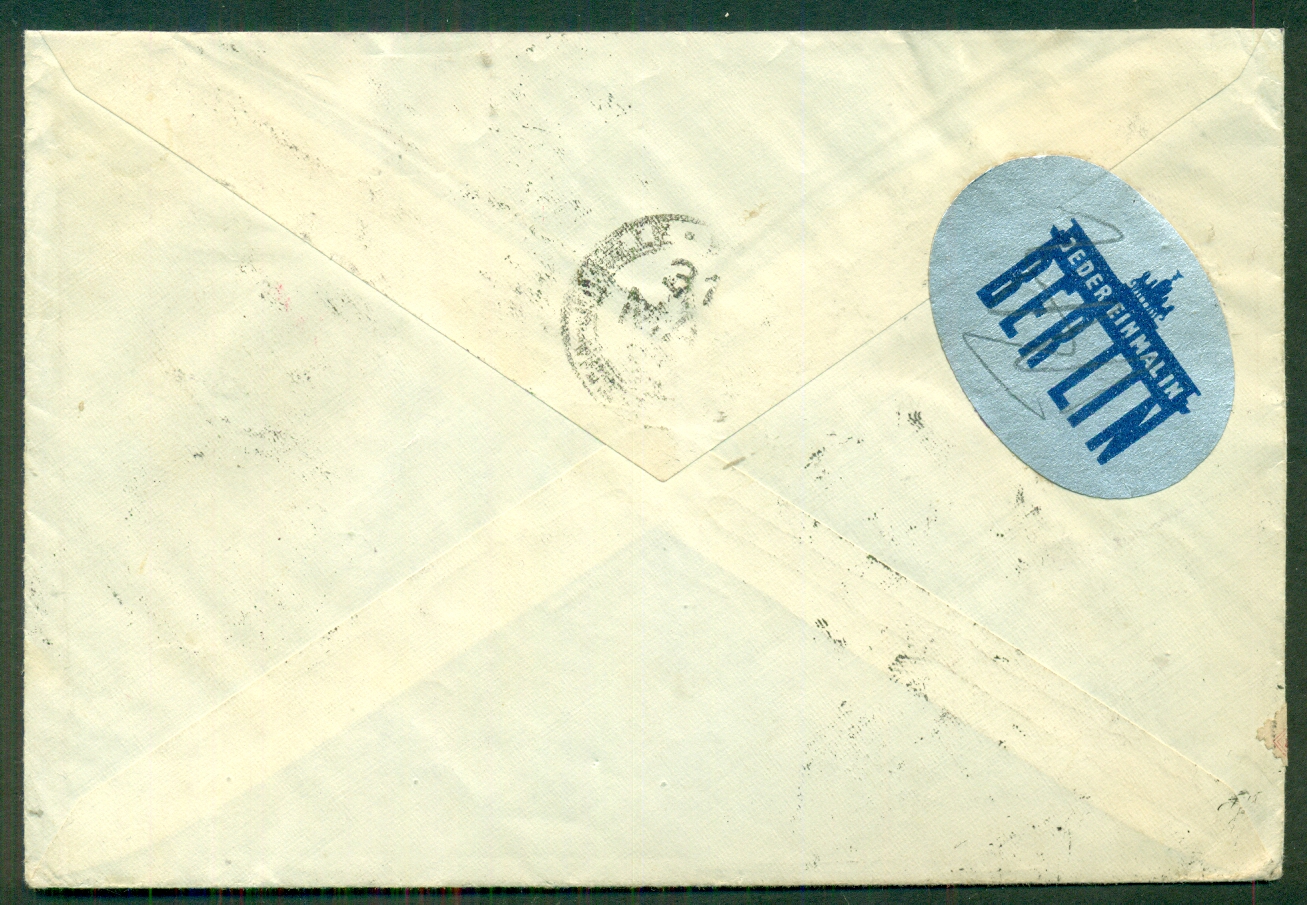 franked w/2fr Zepp stamp + 30r, registered, VF, $155.00 |