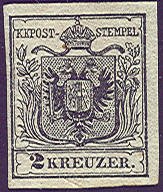 3, 3kr red, beautiful 4 margin stamp with scarce grid cancel (Muller 3214b-3000pts), extremely rare, Ferchenbauer certificate, $900.00