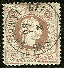 33, 50kr coarse print, used w/neat 1880 cancel, Scott $130.00, $78.00 |