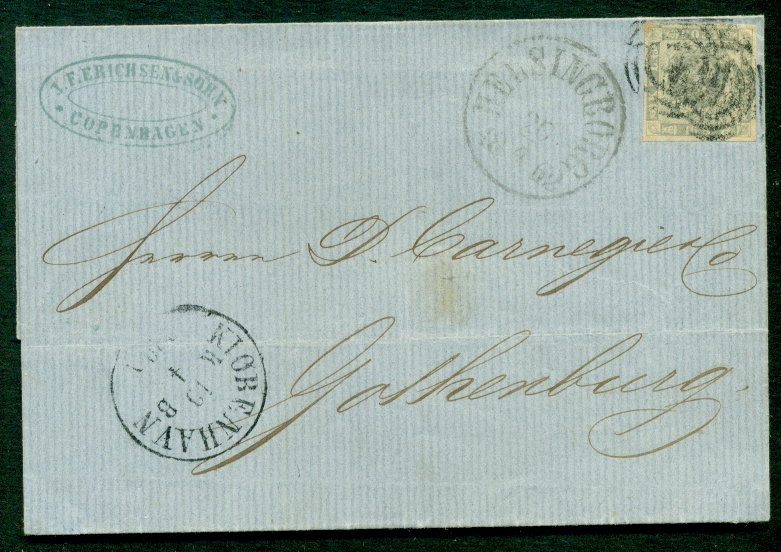 1907/1912, 3 diff cards with straight line Fra Ronne, Fra Kjobenhavn and Fra Bornholm strikes, VF, $55.00 |