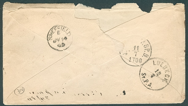 1861, 4sk wavy lines tied by Itzehoe Numeral #119 to Frankfort routed to Hamburg via Lubeck, the KDOPA Lubeck receiving postmark is uncommon, nice item, $75.00 |