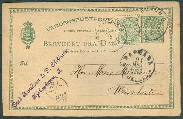 1914, Star Cancel HERSLEV on 5ore card, VF, $20.00 |