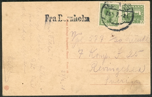 1922, 25ore Chr X tied on postcard to