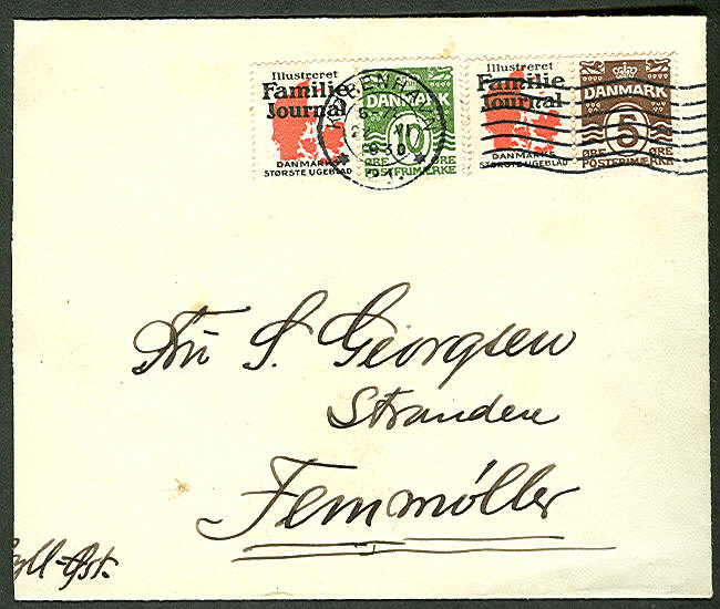 Advertising cover 5ore KKKK + 5ore Galle & Jessen (RE33,44) tied, VF, $40.00 |