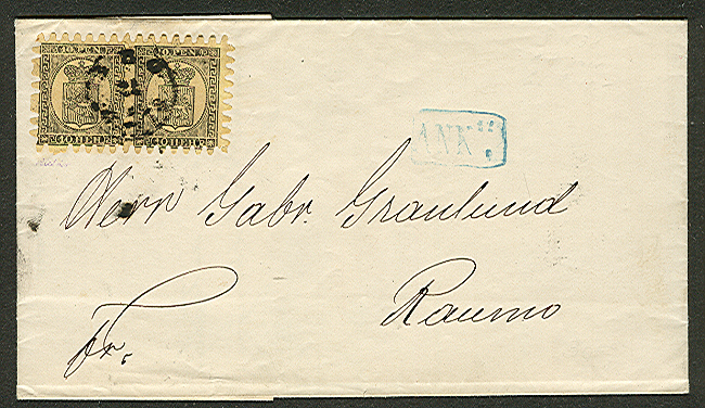 1873, 10pen, roulette II, pair tied ABO on folded letter to Raumo, Perfect Teeth and gorgeous exhibition item, signed Richter, VF+, $1,275.00 |