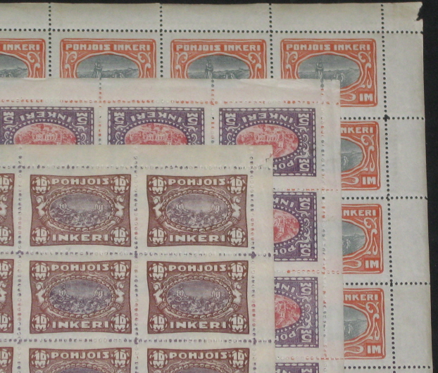 NORTH INGERMANLAND, 12-14 (12-14), 1mk-10mk hi values in COMPLETE SHEETS OF 100, og, NH, very rare for sheets to still exist, as singles Facit retail