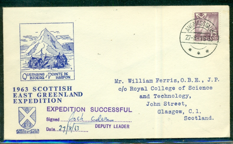 Expedition cover, 15ore tied Angmagssalik, cacheted and signed, VF,