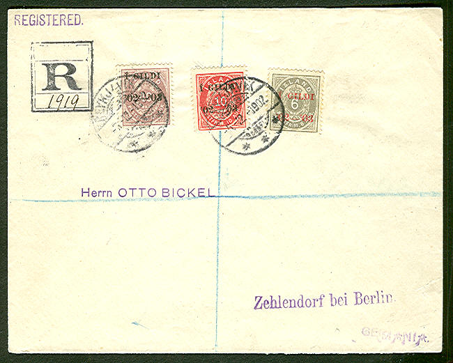 1909, Multifranked w/Two Kings issue on cover to Germany, attractive and unusual franking, $80.00 |