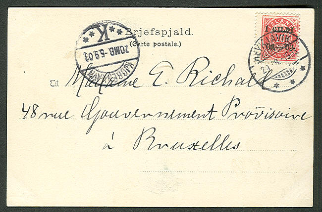 Denmark w/arrival cds on front as well as purple "ISLAND" handstamp,