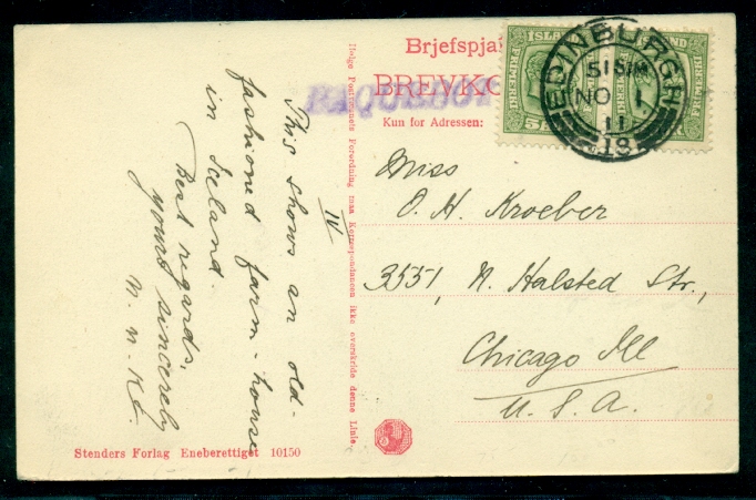 tied Reykjavik on registered cover to England, Edinburgh arrival