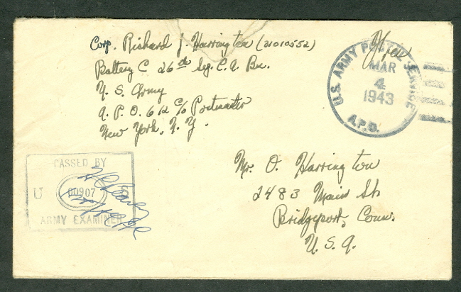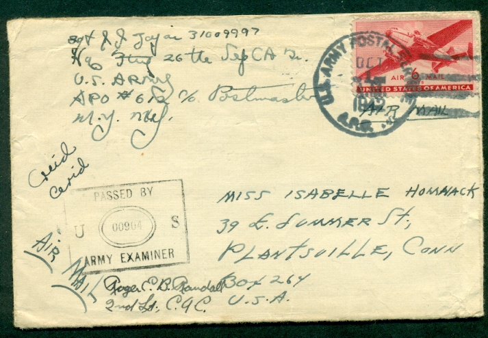1943, Censored APO 860 cover to CURACAO (bkstp) and purple censor, ulti franked, nice item, VF, $90.00 |