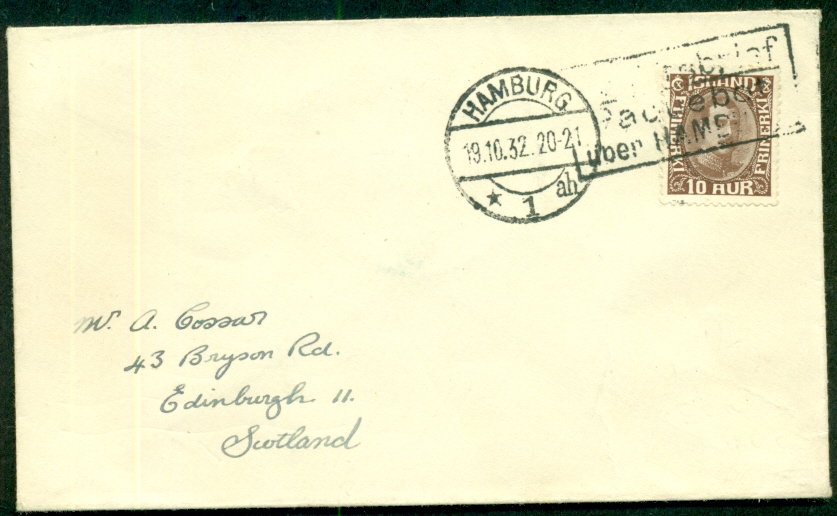 VIII (Scott 94) tied Reykjavik to Germany w/ms “Via Leith”, very nice