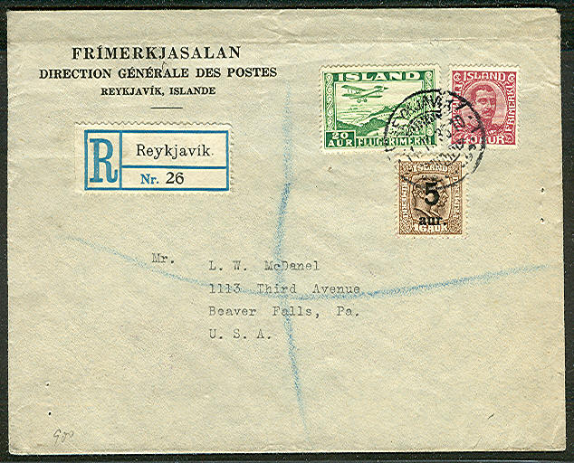 Reykjavik on cover to Germany, scarcer and VF, $240.00 |