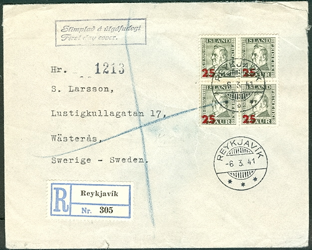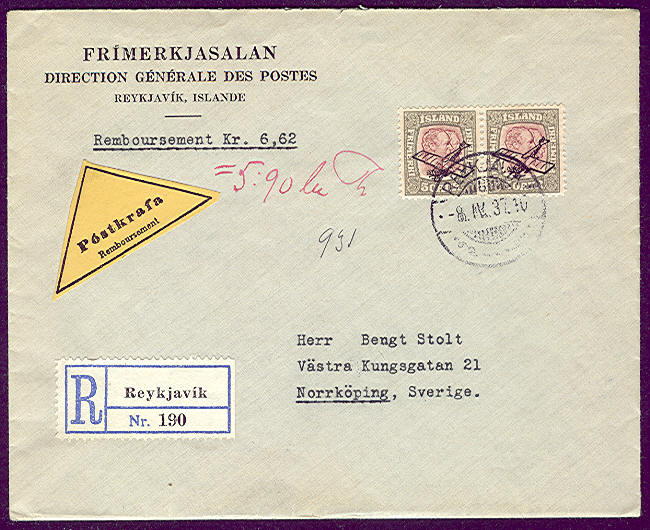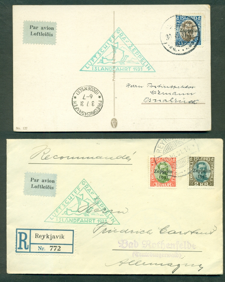 3aur tied Reykjavik to Germany, message reverse, VF, $425.00 |