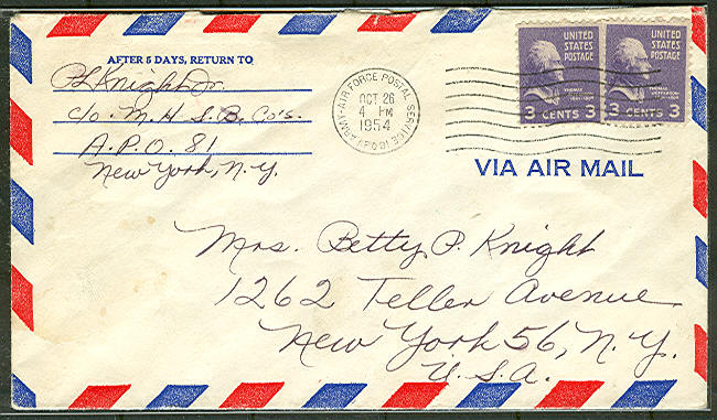 1954, APO 81 cover to U.S. w/U.S. franking, VF,