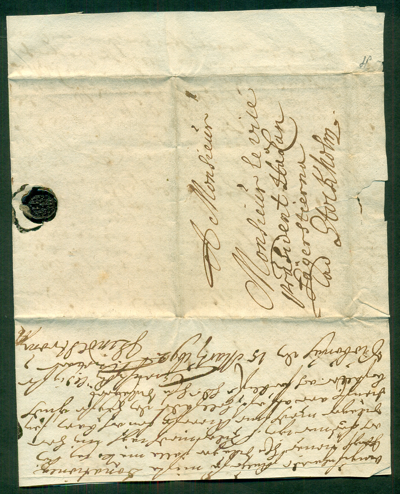 | 409C | 1692, Very Early Folded Letter to Stockholm, signed Pollak, $150.00 | ||