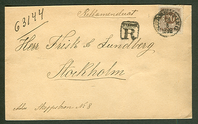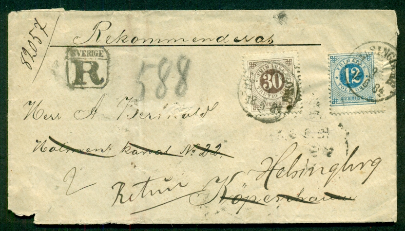 411D | 1892, 30ore Ringtype tied on registered cover to Stockholm, VF, $40.00 | |