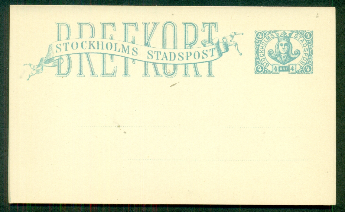 411AP | 1888, Stockholm 4ore Local Post Double Card, unused, scare and VF, $45.00 | |