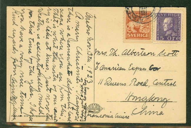 413Z | 1923, Early postcard to CHINA (bkstp), VF, $52.00 | |