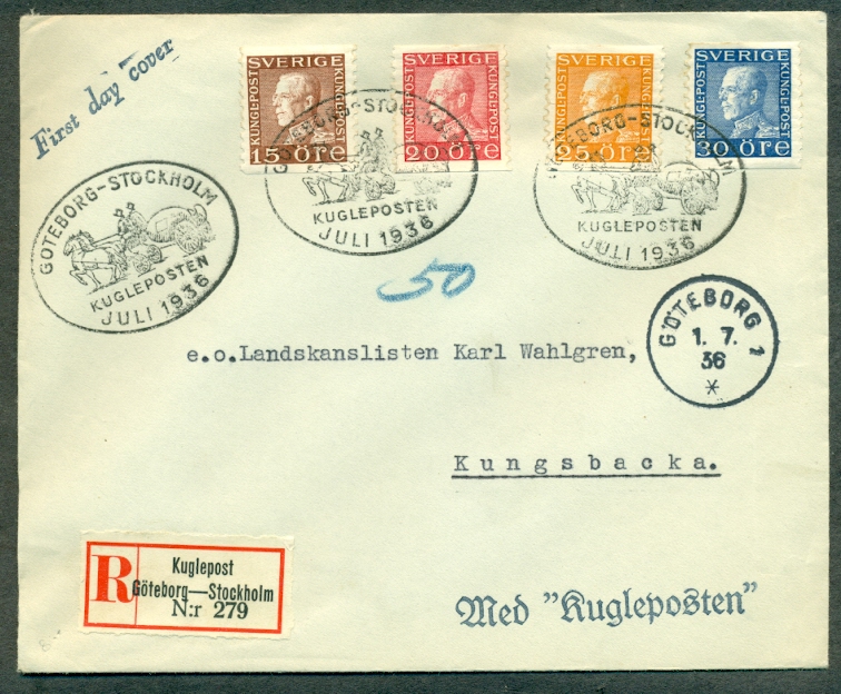 415B | 1936, 15ore brown (Sc. 169) FDC via Kugleposten registered, proper cancels + added postage, VF, Facit $80.00, $40.00 | |