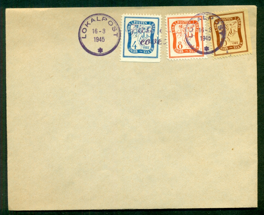 415KB | 1945, Sweden Locals, 4ore Linkopings pair tied on pretty cover, VF, $25.00 | |