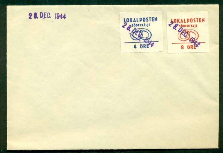 415KL | 1945 Sweden Locals, SODERTALJE 4ore + 8ore tied on FDC, VF, $12.00 | |