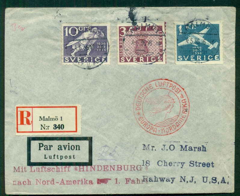 | 415C | 1936, Air/regis cover to ARGENTINA w/high val franking – 5kr x2 + 50ore + 20ore, scarcer and VF, $250.00 | ||