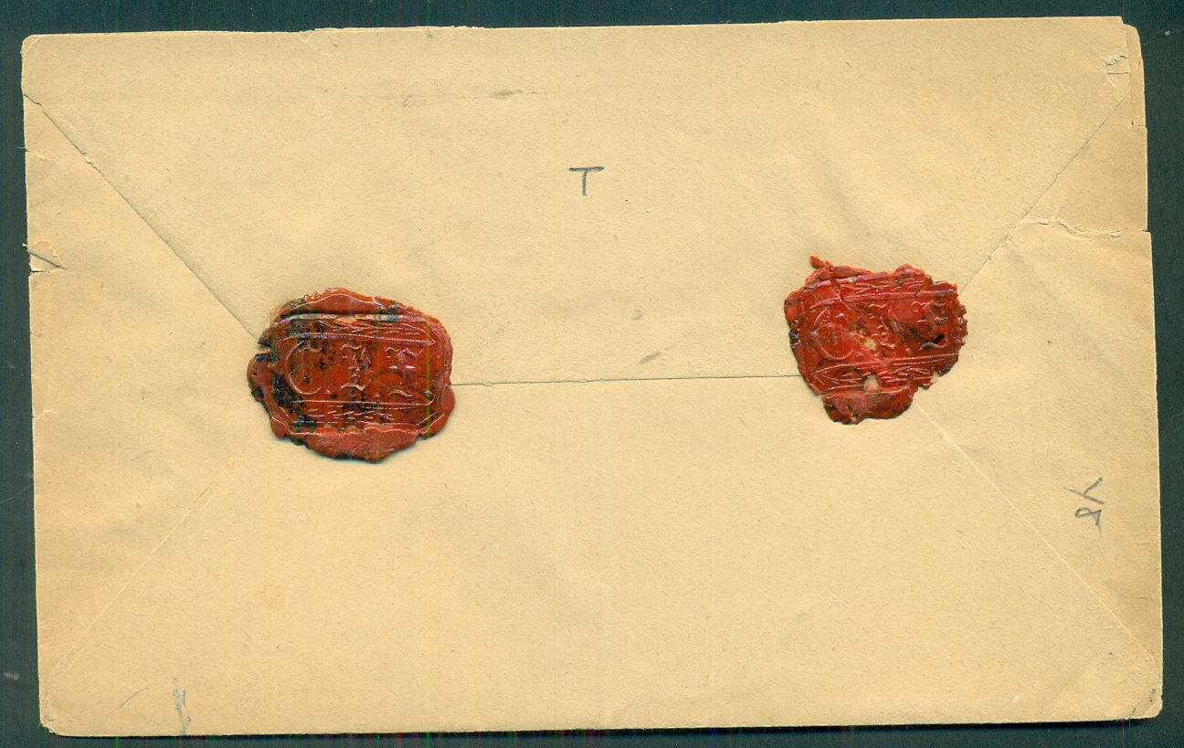 | 411ADM | 1884, 30ore + 12ore double rated registered cover, local use, wax seals reverse, $50.00 | ||